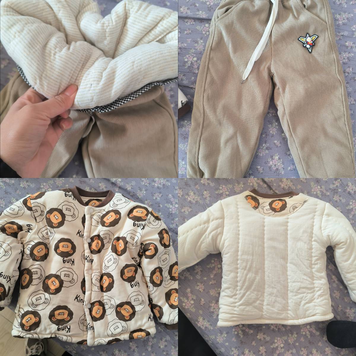 棉袄跟裤子都是110吗,棉袄是棉花的,洗了没穿,囤小了 两件50