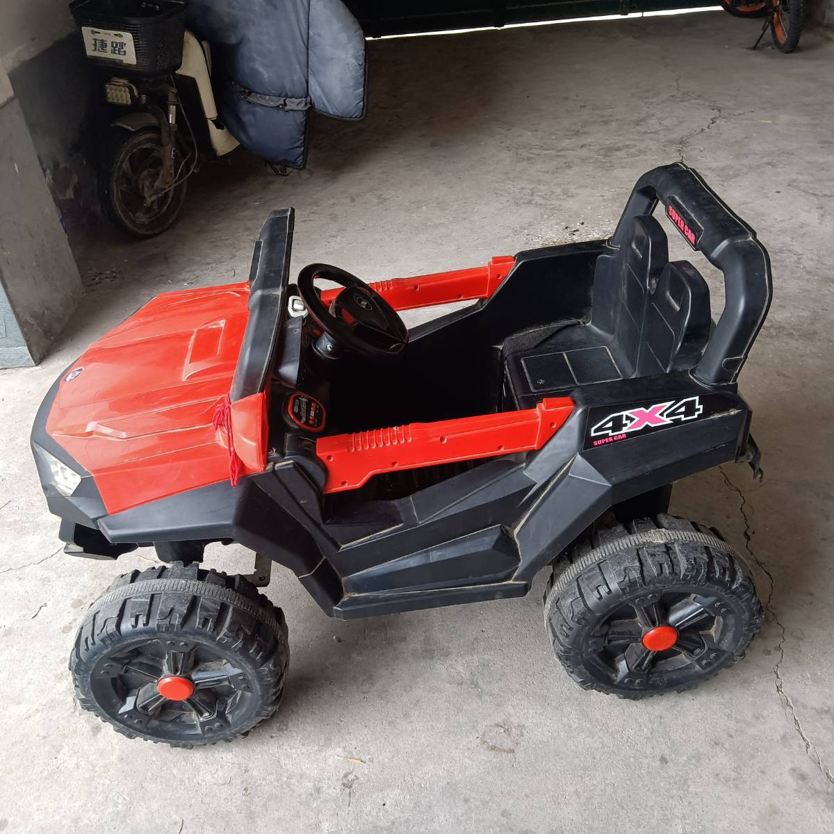 儿童电动汽车,朋友送的,因住在楼上一直没打开,全新,原包装发货