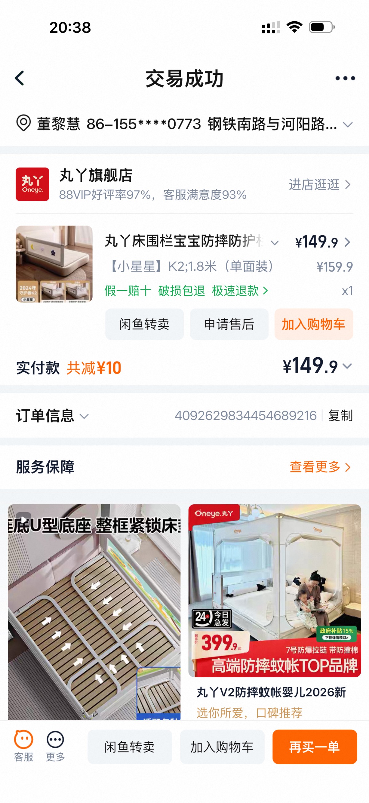 床围栏1.8米,单侧品牌丸丫